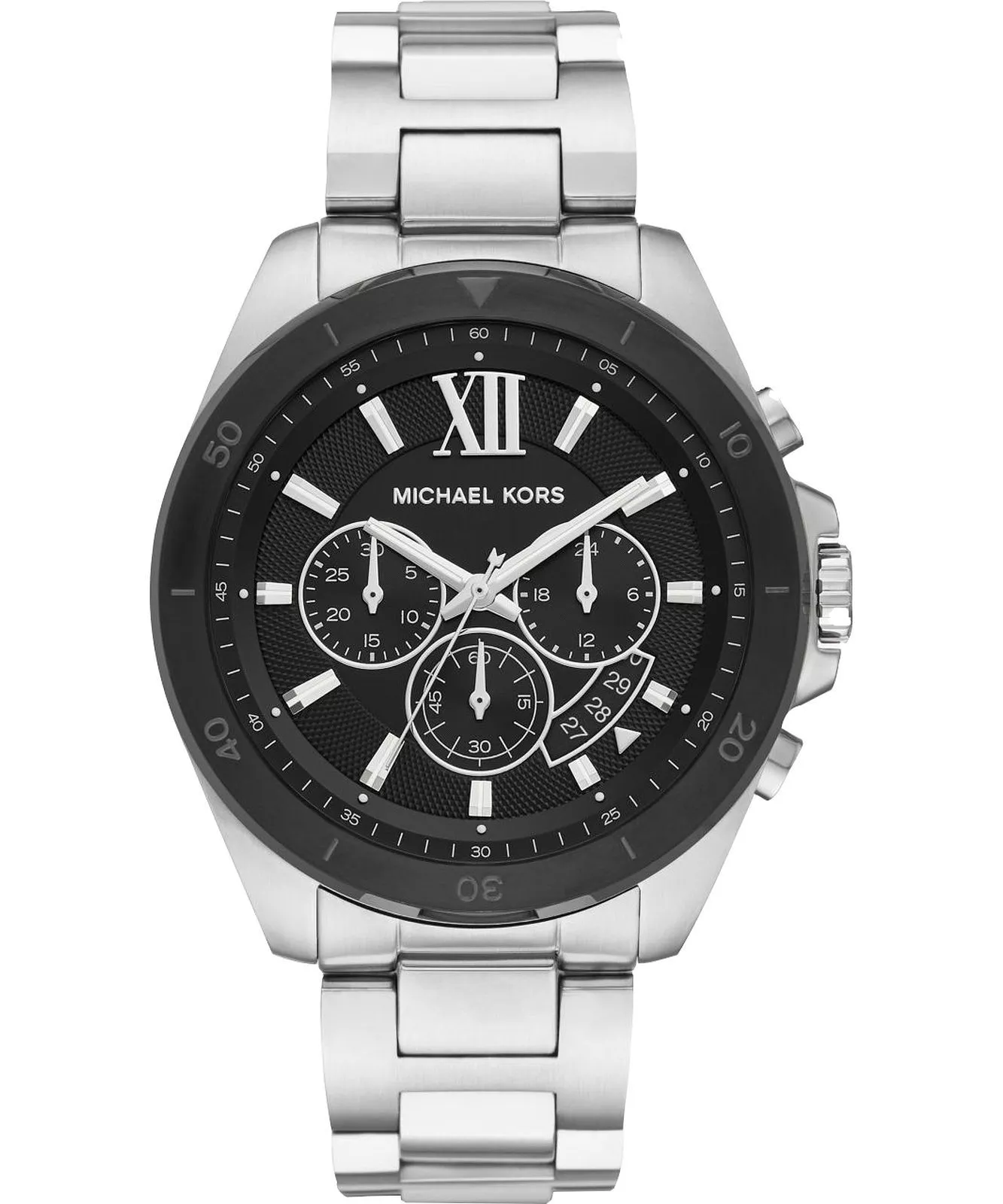 La Michael Kors MK8847 appartient à la collection Brecken. C’est un chronographe imposant qui s’inspire des codes de l’horlogerie de performance. Elle se distingue par son boîtier en acier inoxydable bicolore et son cadran noir texturé, offrant un look luxueux et dynamique, idéal pour un homme qui recherche une montre avec une forte présence au poignet.