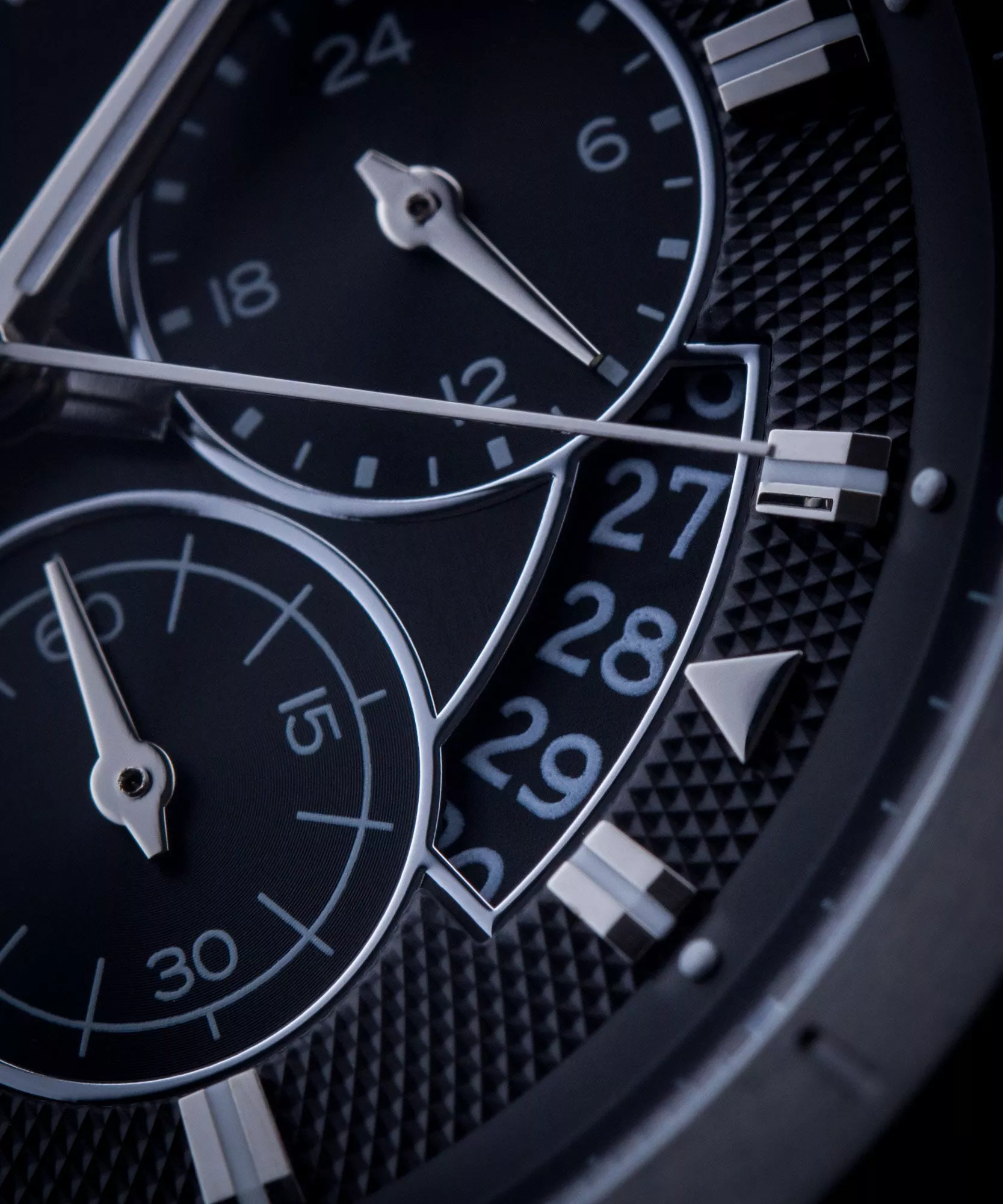Sous-cadran à 3h : Affichage du format 24 heures.